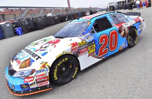 Despite what my co-workers believe, the fact that I live in Northern Nevada does not automatically make me a fan of NASCAR. I am a fan of MarioKart though, and the fact that Nintendo has teamed up with the Number 20 GameStop car for this weekend’s Slater Bros. 300 is pretty darn cool. I wonder though, will the GameStop car be throwing turtle shells or bananas at the other cars?