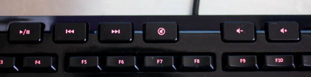 Lastly, for a gaming keyboard, it sure doesn’t have any extra connectors, like USB or audio. That’s kind of an important part of a gaming keyboard, and really, I just realized that the X6 has the same problem, as well as a similar media key layout. Well, consider this criticism retroactively applied to that thing as well.