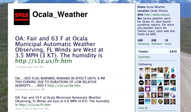 A young man by the name of Dave Osborne built an interesting project called SWASAlert, a super-speedy weather severe alert service that supplies super fast weather alerts via Twitter and SMS. The easiest way to try it is to pop over here and select your city. You’ll then receive instant emergency weather updates straight into your TweetStream.