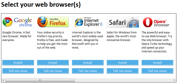 The test were run using Internet Explorer 8 on a Windows 7 machine, because the ballot screen will pop up in IE for users who install the relevant Windows Update and have set Microsoft’s browser as default.