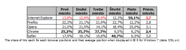 Here’s a table with the stats – the titles are in Slovakian but are simply indicating the order of the browser and its average position in the right column: