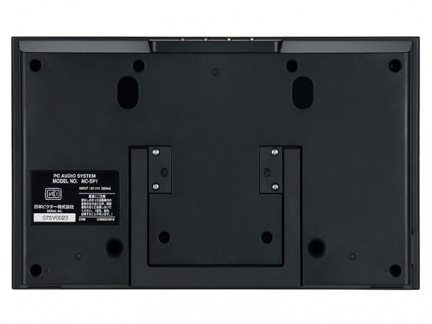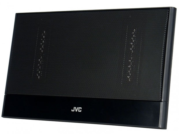 The 12W×2ch (4Ω) speaker is sized at 300×34×186mm. Because it weighs just 1.2kg, JVC is marketing the NC-SP1 as being “portable”.