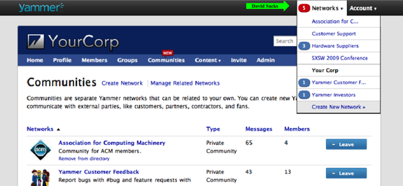 Now they’ll be able to build networks around each of their partnerships, upcoming events, and clients, while still keeping their internal networks private. Communities appear to function a lot like Yammer’s existing Groups, but now they can include people who aren’t in your company network. The site now features a ‘Communities’ tab at the top of the screen, which allows users to jump between a number of linked networks. There’s also a new tab called ‘Networks’ that allows you to see how many unread messages are available in each of the networks you’re linked to. Communities will include the same administration tools as company networks (and will offer more control than Groups do).