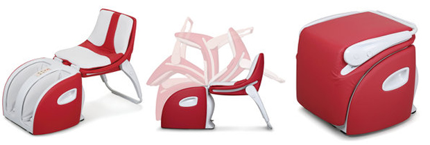 The Venn diagram that drills down to the target buyer of this $800 chair must be a weird mix of people with lots of money, a tiny apartment, and sore legs. In cube form, the product “serves as an ideal footrest or stores unobtrusively in a closet.”