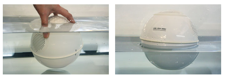A Japanese company called Idea Label has designed the “Music Planet” [JP] today, a portable, ball-shaped MP3 player that you can take with you to the bath tub. The device is IPX7-certified, meaning it can withstand immersion in water up to a depth of 1m for up to 30 minutes.