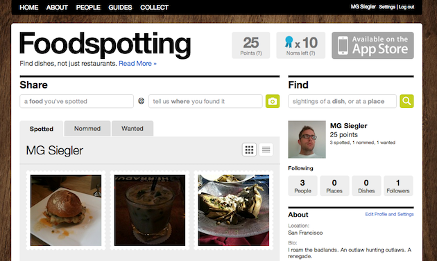 Foodspotting is an application that allows you to take picture of a food, say what it is, and pin it (with geolocation) to the restaurant where you got it. You may wonder who would use such an app — but just think for a second about how many of your friends on Twitter tweet out pictures of food. People have been doing this long before Foodspotting, this app just gives them more of an incentive to do so, and let’s them organize it.