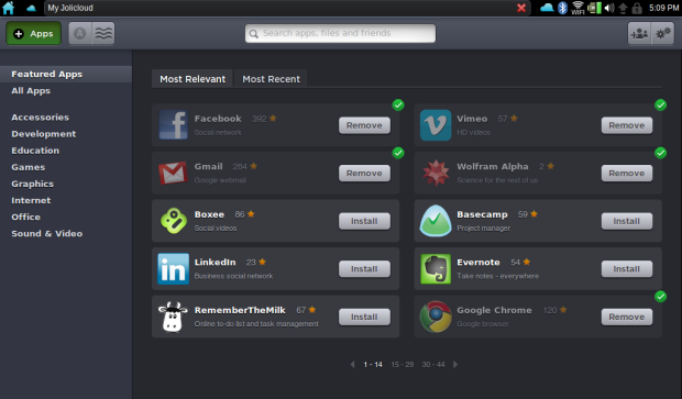 Jolicloud says the reasons for the switch, which was decided upon after evaluation of “different technologies and opportunities”, were Chrome’s speed (courtesy of its V8 JavaScript Engine), better memory usage, support for multiple authentication technologies right out the gate (Facebook Connect, Twitter Connect, etc.) and enhanced HTML5 and Web sockets support, among others.