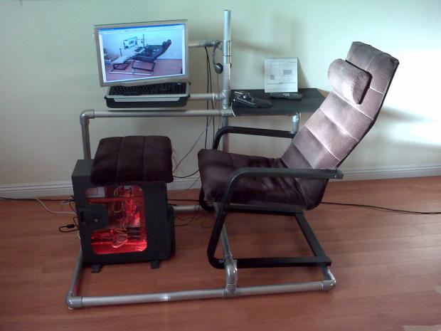 Seems like every year at CES we see those fancy gaming desk setups and every year they still cost thousands of dollars. If you only have tens of dollars to spend on gaming desks, then get some aluminum pipes like this guy did.