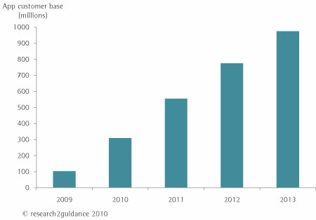 The big surge in applications will be driven by a fast-growing number of smartphone users, which the research company estimates will increase from about 100 million last year to nearly 1 billion by 2013.
