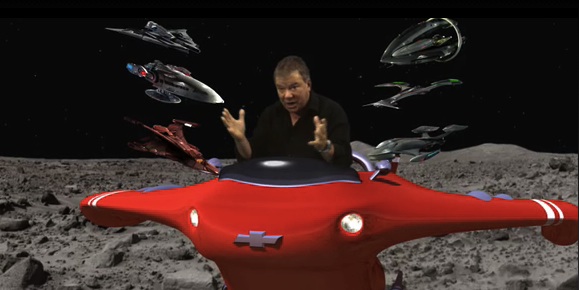 Watching the video, in which Shatner is trapped in a dorky spaceship on a barren moon, I can’t help but think that inside he is screaming, “Khaaaaan!!”