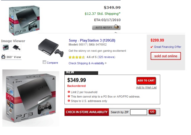 So this is odd. In reading up on Final Fantasy XIII, I decided to see how much it would cost to buy a PS3 and the game. The system is all but sold out all over the Internet! It’s backordered on Newegg, GameStop, and Best Buy (partially), and can be found on Amazon for quite the mark-up—there’s no way I’m paying $370 for the 120GB SKU. Did the Sony factory lose power or something, or is Final Fantasy XIII that big of a system-seller?