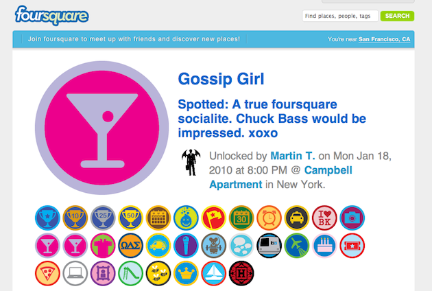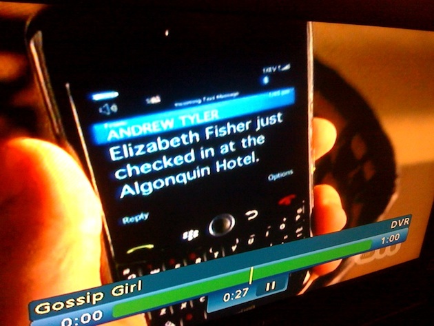 Something else interesting from tonight: apparently the concept of “checking-in” made its onscreen debut on the popular TV show Gossip Girl. Co-founder Dennis Crowley noted the move and tweeted out a picture of it captured from the show. While there is no specific mention of Foursquare, it seems obvious (at least to Crowley) what they’re paying homage to. And Foursquare actually has paid homage the other way, with its “Gossip Girl” badge.