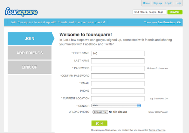 These sign-up pages are important for convincing new users to not only sign up, but also showing them what to do. With Foursquare signing mainstream deals left and right, they’re going to need this.