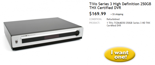 The TiVo Premiere will be here real soon so it isn’t much of a surprise to see a Series 3 on Woot. You might want to consider it, too. The Series 3 might be old, but it’s still a great DVR. It even has a few advantages over the TiVoHD line and upcoming Series4.