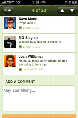Specifically, you can now add pictures and comments to check-ins in Gowalla. This makes for a much richer social experience both using the app and the website (the data goes over there as well). As founder and CEO Josh Williams describes in the video below, there were a lot of people who wanted to talk about the social activity on Gowalla, but previously they had to text message or email their friends to say something like “hey I saw you check-in at the restaurant, want some company?” Now, that type of dialogue can take place all within the app.