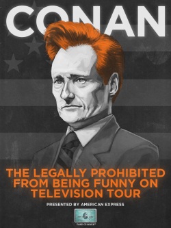 A little update on Conan O’Brien, seeing as though we spent a couple of days there talking about his every move. The man is taking his show on the road, bringing the funny to a city near you in the coming weeks! It’s the called “The Legally Prohibited From Being Funny On Television Tour,” and I’m sure it’ll be wonderful.