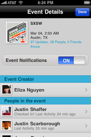 And they’ve cleaned up the stream of information around these events. There is now a filter to show everyone commenting, or just your friends. There are also now number indicators to show unread items. And the check-in process has been simplified thanks to big green buttons that make it obvious.