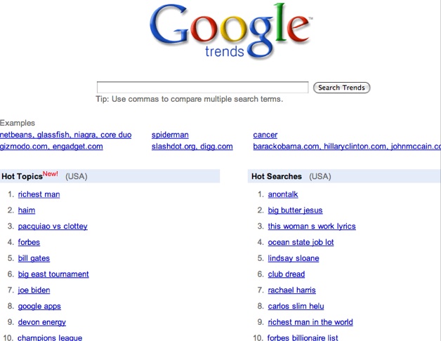 Google has Google Trends, Twitter has trending topics, and now so does Wikipedia. Pete Skomoroch, a Senior Research Scientist at LinkedIn and blogger at Data Wrangling, built a trending topics page for Wikipedia. The homepage ranks the top-25 Wikipedia articles with the most pageviews over the past 30 days, as well as the fastest rising articles in the past 24 hours.