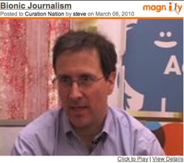 Steven Rosenbaum is the CEO of Magnify.net, a video curation platform that powers more than 68,000 web sites. Rosenbaum is a serial entrepreneur and Emmy Award winning documentary filmmaker. Watch his video notes of Saul Hansell talking about Bionic Journalism and AOL’s larger journalistic ambitions by clicking in the two previous links. .Follow Steve on Twitter.