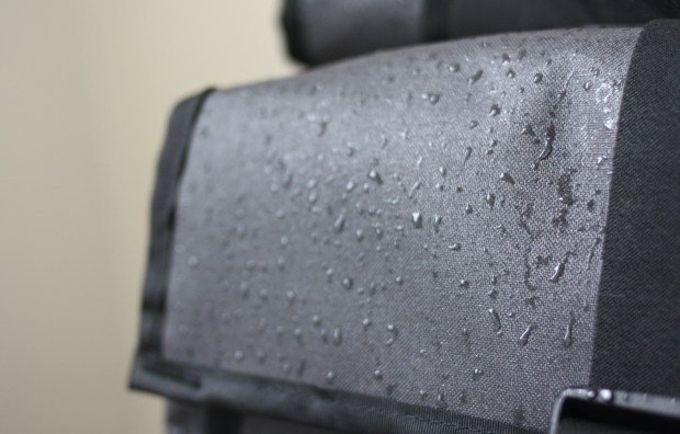 Since it was nice out whenever I happened to take this bag with me, I didn’t really get to test out its weather sealing. So into the shower it went! I was happy to see that the water beaded up and flowed right off, as planned. Furthermore, there didn’t appear to be many catch points where the rivulets would collect, which points to good design on their part. It should be noted that the expandable portion of the backpack is not weather-sealed. I imagine this was necessary to let it compact well, but it’s a bummer nonetheless. That said, it’s not like it’s made of cheesecloth. You just can’t wear it in the shower. Also worth nothing: the padding that your back rests on is absorbent as well.