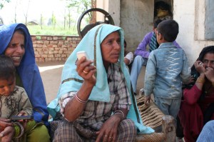 Another woman (pictured below) I spoke with was a widow with six kids and 21 grandchildren. (So many, she actually had to ask someone else how many she had.) As grandkids clambered in and out of her lap, she explained that she gets pension checks from the government, but the delivery used to be spotty. Before her phone she had no recourse but to travel to Delhi to inquire about it. Not exactly something she relishes, having lived her whole life in this village and only been to the big city twice. Now she can call the office and gives them an earful. Not surprisingly, the checks have started to come more regularly.