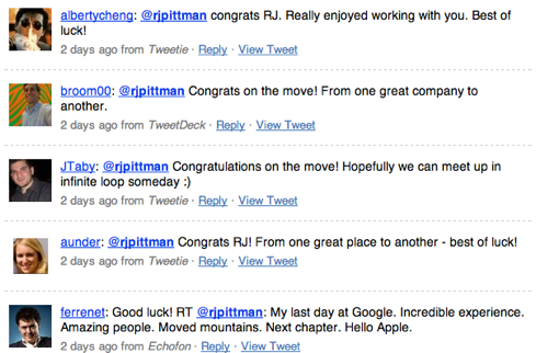 product manager Director of Product Management at Google, has left the company to join Apple. We’ve been tipped off to a tweet he sent out two days ago that said “My last day at Google. Incredible experience. Amazing people. Moved mountains. Next chapter. Hello Apple.” Pittman has since removed the tweet from his Twitter feed, but judging by the tweets still visible in Twitter search, it’s true. Update: This post originally said Pittman was a Product Manager, but his title was in fact Director of Product Management.