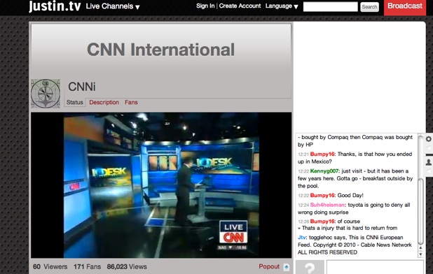 Despite these measures, a casual perusal of the most popular streams on Justin.tv is filled with pirated streams of professional sports, TV shows, and movies. Right now, for instance, you can watch King of Queens or CNN International, taken straight from TV. The company finds itself increasingly under fire for copyright issues. To help it deal with these issues, Justin.tv now has a new adviser, Eric Goldman, the director of the High Tech Law Institute at Santa Clare University and a highly-respected Internet law blogger. Unlike Justin.TV’s very-expensive lawyers at Wilson Sonsini, Goldman will be less constrained in speaking publicly on behalf of the company about these issues.