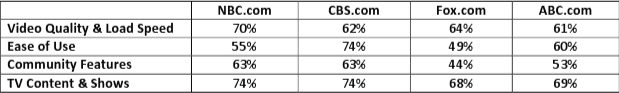– Ease of use was deemed most important by 33% of the participants, followed by TV content & shows (12%) and community features (5%). CBS.com scored highest in ease of use.