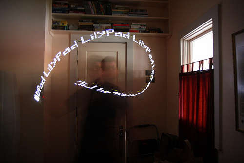 This cool Instructable teaches you how to build your own persistance of vision wristband, one of those things that spell a word when you swing it in front of someone fast enough. The device uses a Lilypad Arduino board and about eight 8 LEDs.