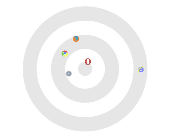 Notably, both the Opera and Safari web browsers beat Google’s own Chrome browser in the test. As you can see in the picture above, Opera is the clear leader, with only 78 failures (the closer to the center, the less errors). Safari came in second with 159 errors, with Chrome in third with 218 errors. Firefox is close behind with 259 errors, while Internet Explorer is the outlier with 463 errors.