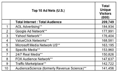 Fox Audience Network is the 8th largest advertising networks according to Comscore, with nearly 150 million U.S. unique visitors a month. And it’s a close race. AOL is first with 185 million, and Google is second with 178 million.