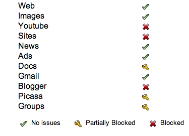 Google maintains a page showing the availability of its various services in mainland China. However, that page has not been updated since March 21. Google tells us it will update the page soon.