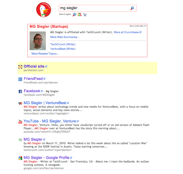 The search engine Duck Duck Go has obtained the domains Cuiler.com and Cuilest.com to give itself a cooler front end. Smart move. After all, it put it on my radar, and after trying out the engine, it seems very, very solid. It’s a simple engine that doesn’t clutter its pages with unnecessary results. It offers tailored results for regular search as well as information, and shopping results. And, for the adventurous types, there’s an “I’m feeling ducky” button. And, unlike Google, the service says it keeps no information from its searches.