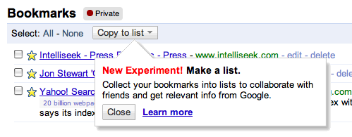 Google is trying in so many ways to catch up on the sharing front. It wants you to share more links through Google properties such as Gmail, Google Reader, Google News, and Google Buzz. Today, it is adding a new sharing feature to Google Bookmarks. You can now organize bookmarks into lists and share those lists.