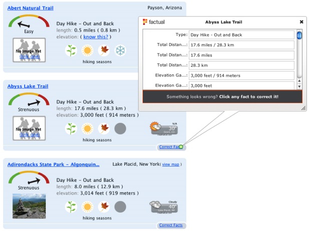 In other words, people don’t have to go to Factual’s website to add restaurants or hiking rails to each database. They can edit the information directly on Websites where the visualizations are embedded.