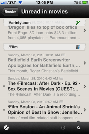 If you haven’t been using the iPhone for a long time, news of a great feed reader may sound lackluster to you. After all, it’s been almost two years since the launch of the App Store now, it may be hard to believe that no one has nailed a simple feed reader app yet. But that has been the case. A few are okay, like NetNewsWire and Byline, but none have been great on the level that Tweetie is great as an iPhone Twitter client. In fact, I’d say the best feed reader on the iPhone up until now has been the mobile web version of Google Reader itself. But that too is only good, not great.