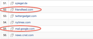 But apparently, a ghost town still sends more traffic than the much buzzed-about Buzz. In the past month, FriendFeed is the #52 referrer of traffic to TechCrunch (in its heyday, it was occasionally in the top 20), Google Buzz, meanwhile, is at best #55. I say “at best” because it’s hard to know exactly how much traffic Buzz is sending because it’s built into Gmail. But still, I’ve drilled down into the subdomains to look for clues that it’s Buzz sending the traffic. Obviously, a solid chunk from the mail.google.com domain is coming from Buzz, and also some from google.com where Google Buzz profiles are hosted.