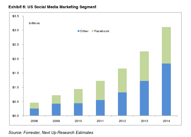 The report, which is you can access here, estimates Facebook’s current valuation between $8.4 and $9 billion after using two methods of analysis comparing revenues with steady-state enterprise valuation ($9 billion) and comparative enterprise valuation ($8.4 billion). The steady-state valuation estimates use a 25x market multiple and normalized net margins of 30%. Assuming that Facebook will make $2.5 billion in 2014, the report arrives at a target 2010 enterprise value of $9 billion. For the comparative valuation, the report uses a secular growth rate of 25% and EBITDA margins of 50%, to arrive at a conservative valuation of $8.4 billion (assuming the company’s revenue to be $1.3 billion in 2011.)