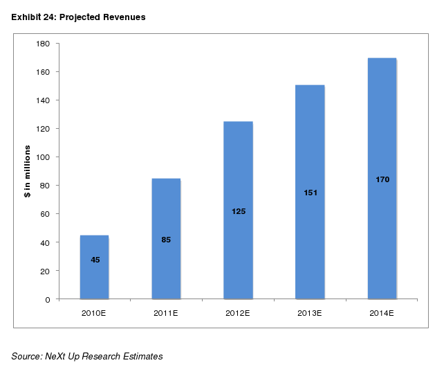 It is all pretty much guesswork since Twitter still doesn’t know where the bulk of its revenues will come from. But the report makes a stab at projecting revenues of $45 million in 2010 going to $170 million in 2014. It notes various sources of potential revenue in order of decreasing likelihood, starting with licensing its data feed to search engines (which is where most of its revenue is coming from today) and creating premium accounts for businesses (something else it has already dabbled in). Other options for making money: charging third party apps based on how much API data they use, premium accounts for heavy individual users (limited potential), Web ads on user profiles, or ads in Tweets (these could alienate users).