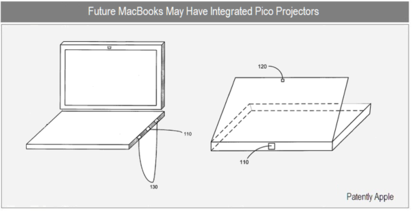 From the patent, it seems like the projector could be placed either in the back of the notebook or one the side. Either way, it would enable you to make your boring business presentation even less exciting by reading every word of your PowerPoint slide. The filing also includes some sensors that would be used to detect the position of the surface so that the image can be adjusted accordingly. While I would like to see this on a Macbook soon, I’m certainly not getting my hopes up.