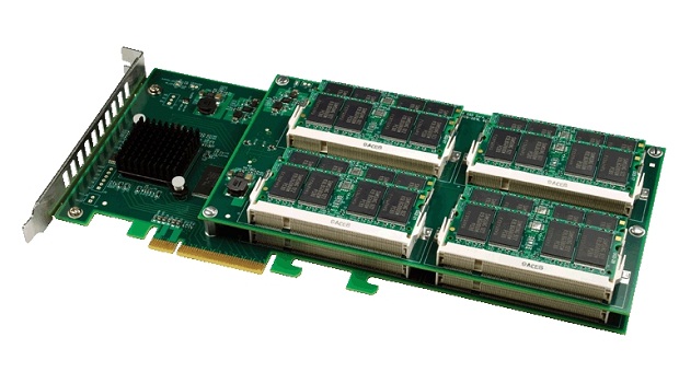 These speeds are achievable with 8 PCI-E lanes along with an eight-way RAID 0 configuration. The drives are bootable and even feature interchangeable memory modules making the drive truely field-serviceable and upgradeable.
