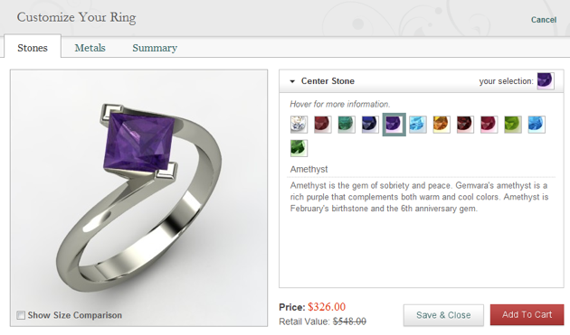 Lauzon says that the company will still support the nearly fifty jewelers who have Gemvara’s kiosks already in their stores, but that Gemvara has shifted its focus to its consumer-facing site because it sees a bigger opportunity there. The Boston-based company now has 22 employees. Other online jewelers include Blue Nile, Ice.com, and Amazon.