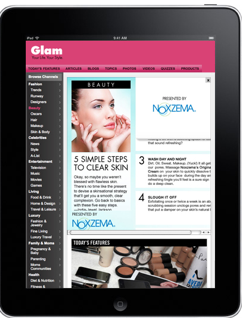 For advertisers, Glam is offering engaging ad formats on a variety of devices, including formats customized for the iPad without the use of Flash. For publishers, Glam is helping provide additional waysto connect with audiences on the go. Specifically, Glam sees the iPad as an opportunity to bring magazine-like glossy content to the device (a strategy that many online sites and magazines are taking).