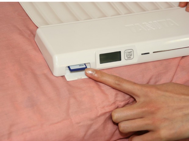 All data from the so-called Sleep Scan system is stored on an SD or SDHC card and can be analyzed through a piece of software Tanita is bundling with the “hardware”. You can then evaluate the quality of your sleep (how long you really slept, how often you woke up during the night etc.) through graphs and a “sleep score” the software gives you, based on information coming from the capacitor microphone inside the mat that tracks vibrations.