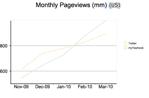 Some of the site’s growth — the boost in unique users, in particular — is likely due to the fact that myYearbook now syndicates Chatter updates to Twitter, which direct users back to the site. But he says the rise in engagement (page views have jumped from 544 million in November to 998 million in March) is primarily from users interacting more with the site, and it’s driven by Chatter, along with the site’s redesign. Cook also points out that according to comScore, myYearbook has more page views than Twitter.com does in the United States (though he concedes that much of Twitter’s traffic comes from third party clients, and Twitter has a large international audience).