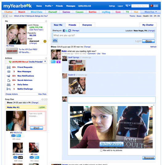To help boost engagement, myYearbook has borrowed features popular on other sites and incorporated them into Chatter. First, the site added Ask Me, which is a Q&A feature very similar to Formspring.me. It then added ‘Rate Me’, which lets you post a photo and have it rated by strangers (which sounds like a recipe for low self esteem, but Cook claims that people receive quite a few ’10’s). The site also plans to add a feature called ‘2 Truths & A Lie’, which is an online version of the classic game.