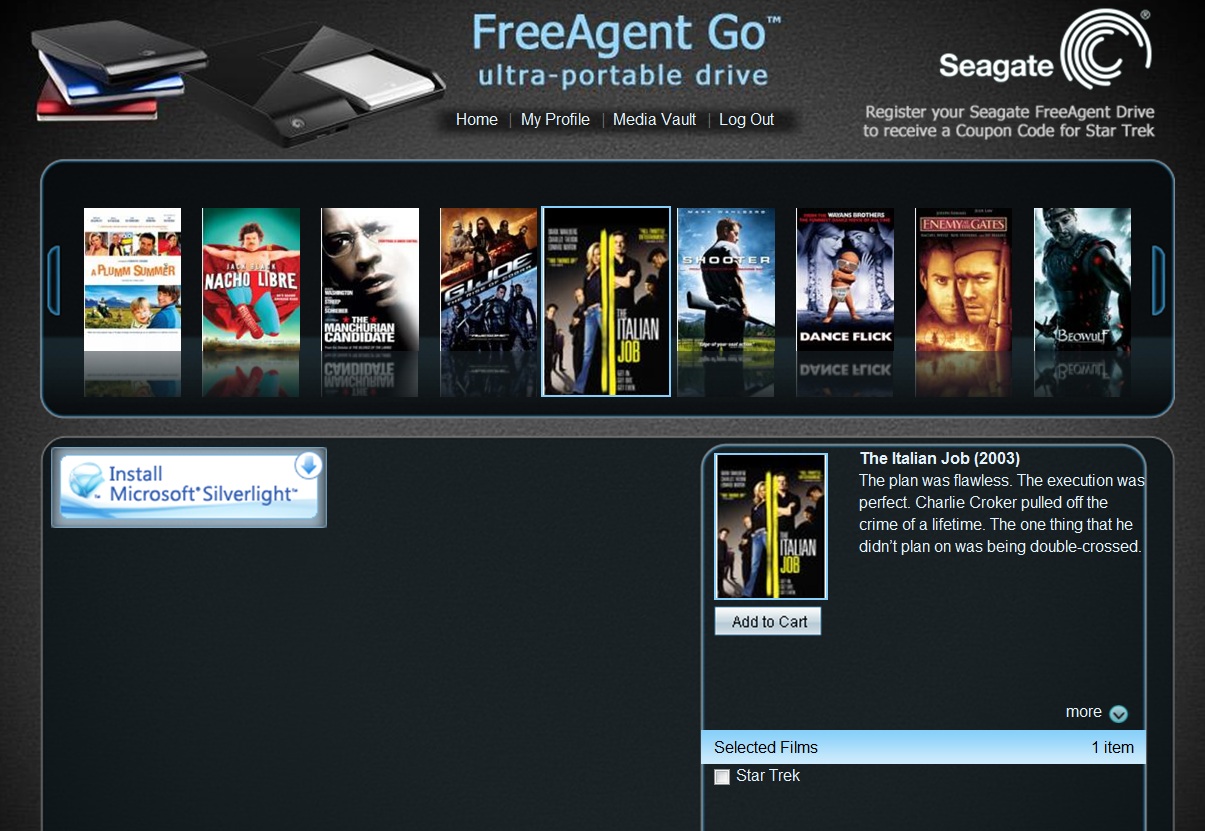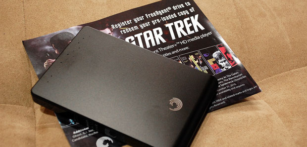 The drive is supposed to come with a promo code to unlock the new Star Trek movie. I can’t figure out how to use it. The code doesn’t seem to do anything and I’m not spending $20 on the 720p movie just for this post. Sorry, I’m a starving blogger. The press release however states that “The films will be licensed for multiple devices to allow for portability and enjoyment of them on a desktop computer, laptop computer, or widescreen television, using the FreeAgent Theater+™ HD media player.” Don’t expect that much portability, though. These files are locked down.