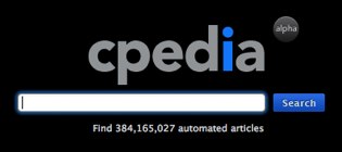 On April 8 the company launched a new service, cpedia, which creates automated articles about queries instead of simply returning search results. The results are sort of strange, but as an experiment it certainly has legs. As in, I find it interesting, not necessarily that it can be a business. For things not covered well by Wikipedia, it can be useful and I can imagine, years from now, after many iterations, well, you get what I’m saying.