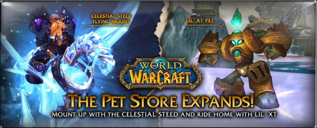 Yup, Blizzard is selling World of Warcraft mounts now. Two of them have just gone live on their little online store there, Celestial Steed and Lil’XT. The former is $25 and the latter is $10.