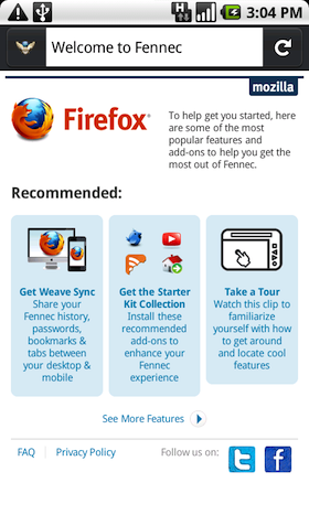 He also notes that there’s an experimental version of Weave, Mozilla’s syncing tool that will work with this pre-Alpha build of Fennec. Visit this page and click on the “Experimental version” to find it.